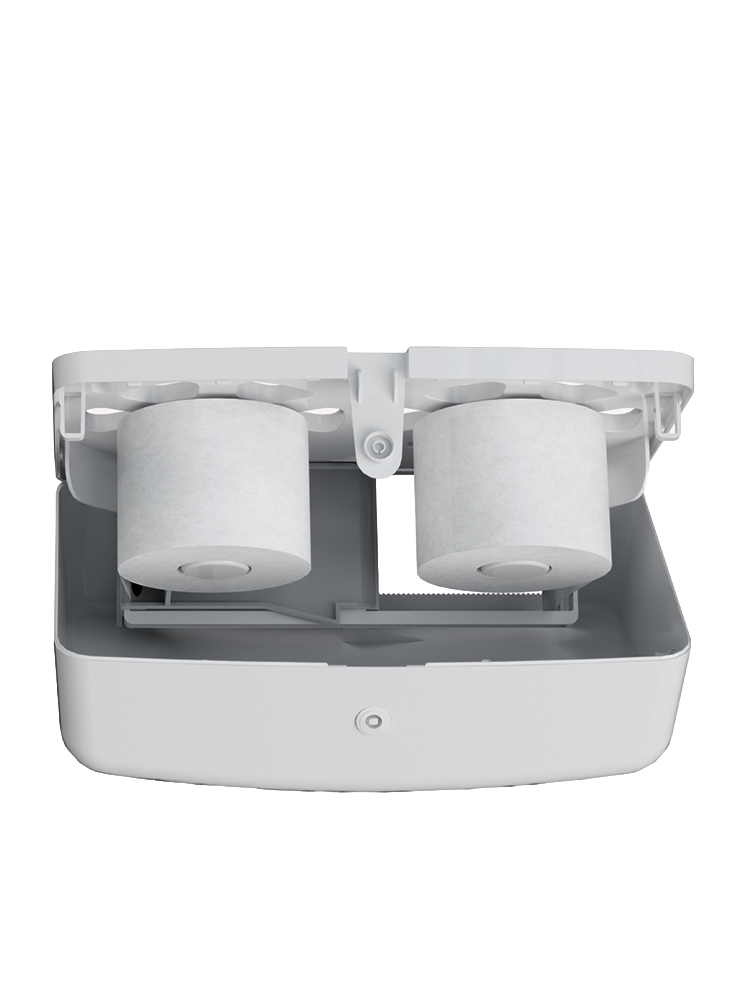 - « Anti-panne » et anti-gaspillage : une fois le 1er rouleau terminé, l’utilisateur n’a qu’à faire glisser le clapet sous le distributeur pour accéder au 2ème rouleau.